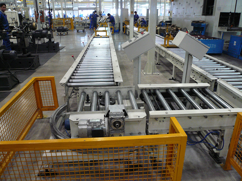 常柴股份公司柴油發(fā)動機輥筒表面鍍硬鉻的裝配輸送線(90度來回旋轉(zhuǎn)輸送和直道輸送)