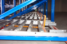 該型貨架采用重力式輥筒輸送機(jī)作為貨架的主要部件,物品通過輥道自動(dòng)從末端移動(dòng)到前端,配合自動(dòng)堆垛機(jī),升降臺或高位叉車作業(yè),具有品種區(qū)別明顯、物品先進(jìn)先出、空間利用率高等顯著優(yōu)點(diǎn)。