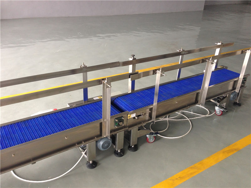 塑鋼網(wǎng)帶輸送機(網(wǎng)帶POM材質(zhì),機身為304不銹鋼)
